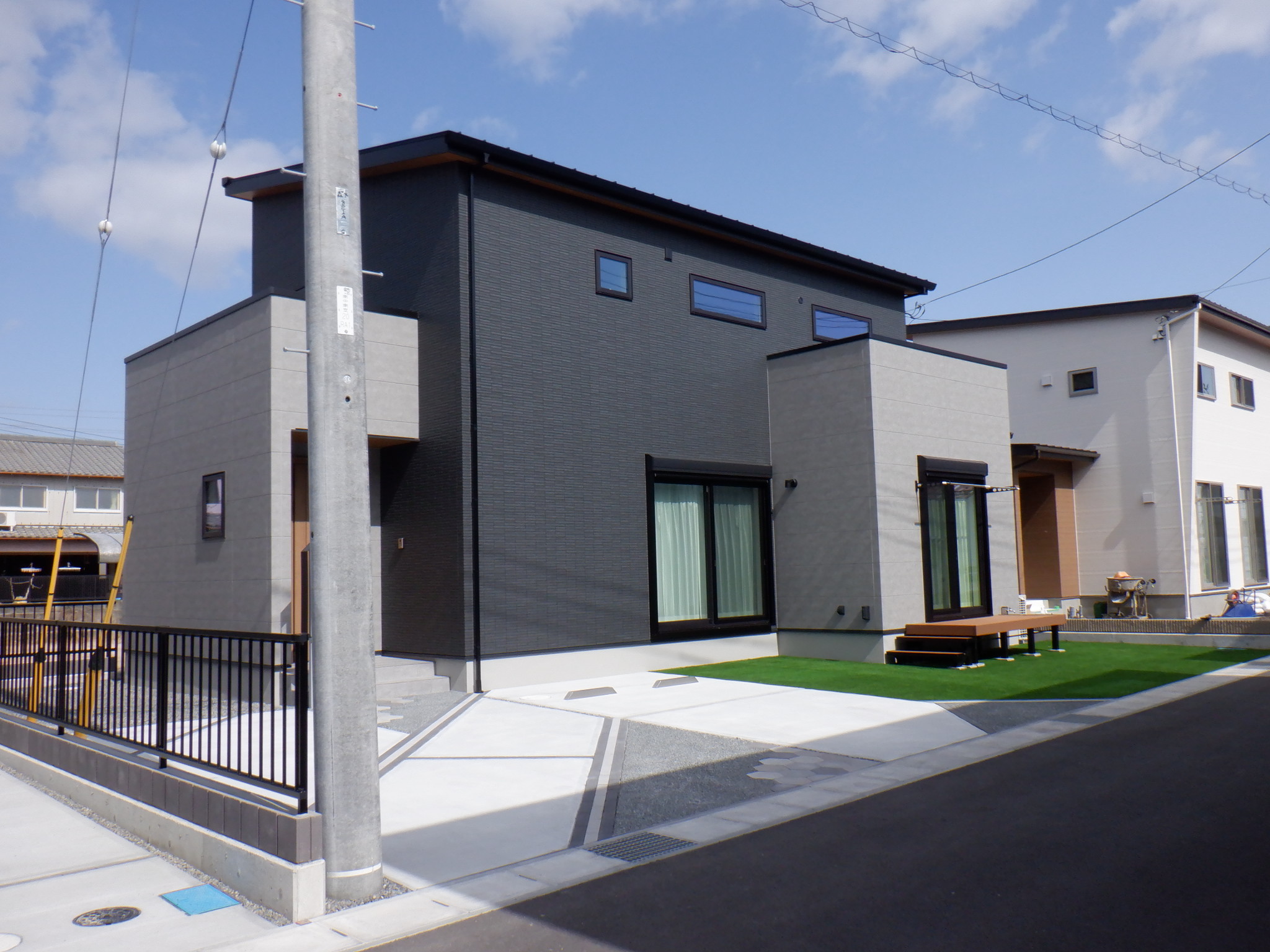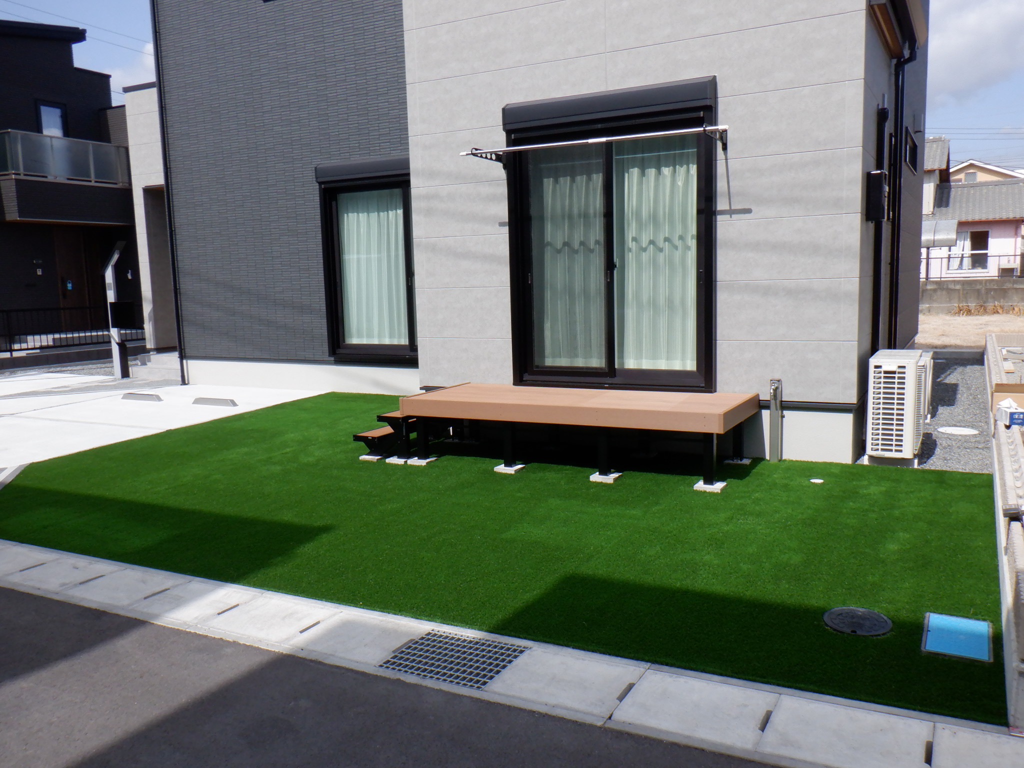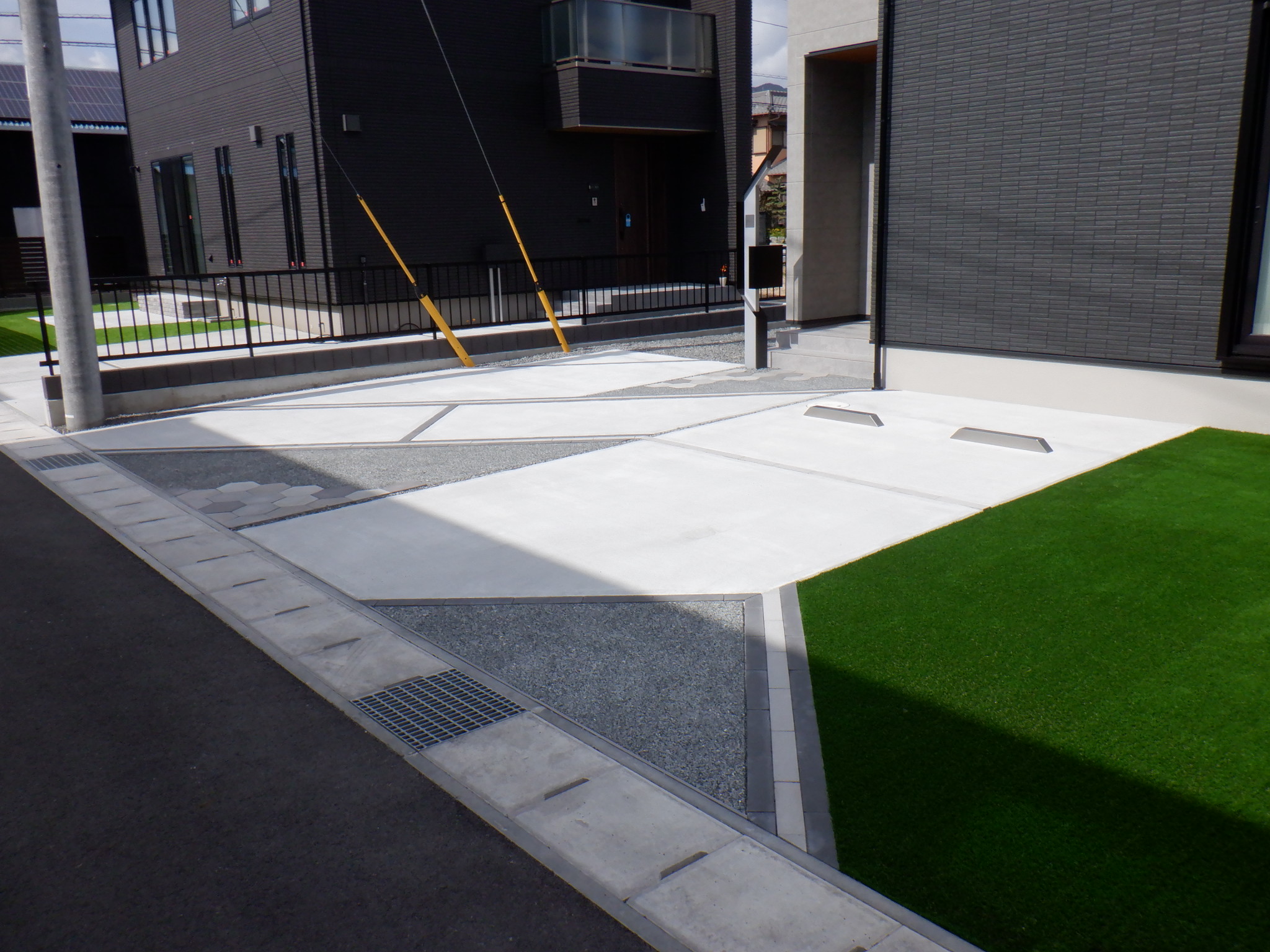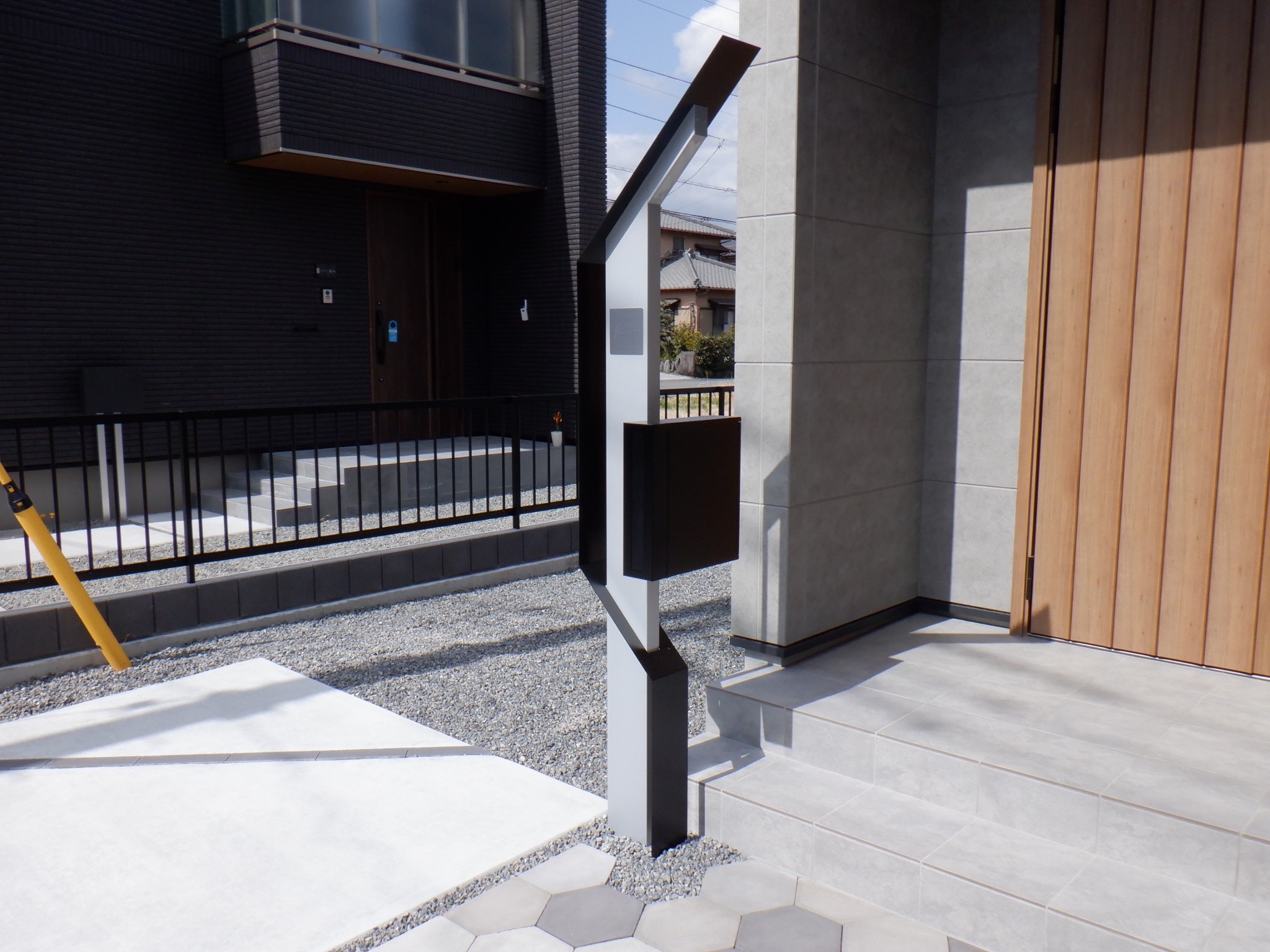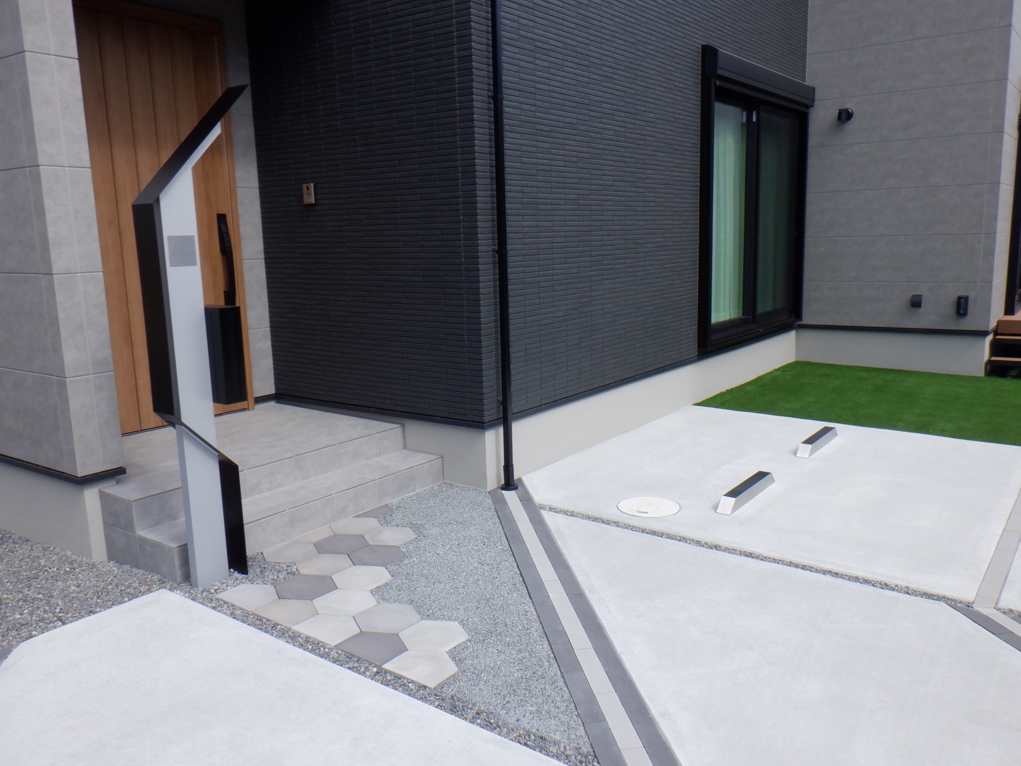 アプローチには六角形平板を取り入れ、リズムと個性をプラス。