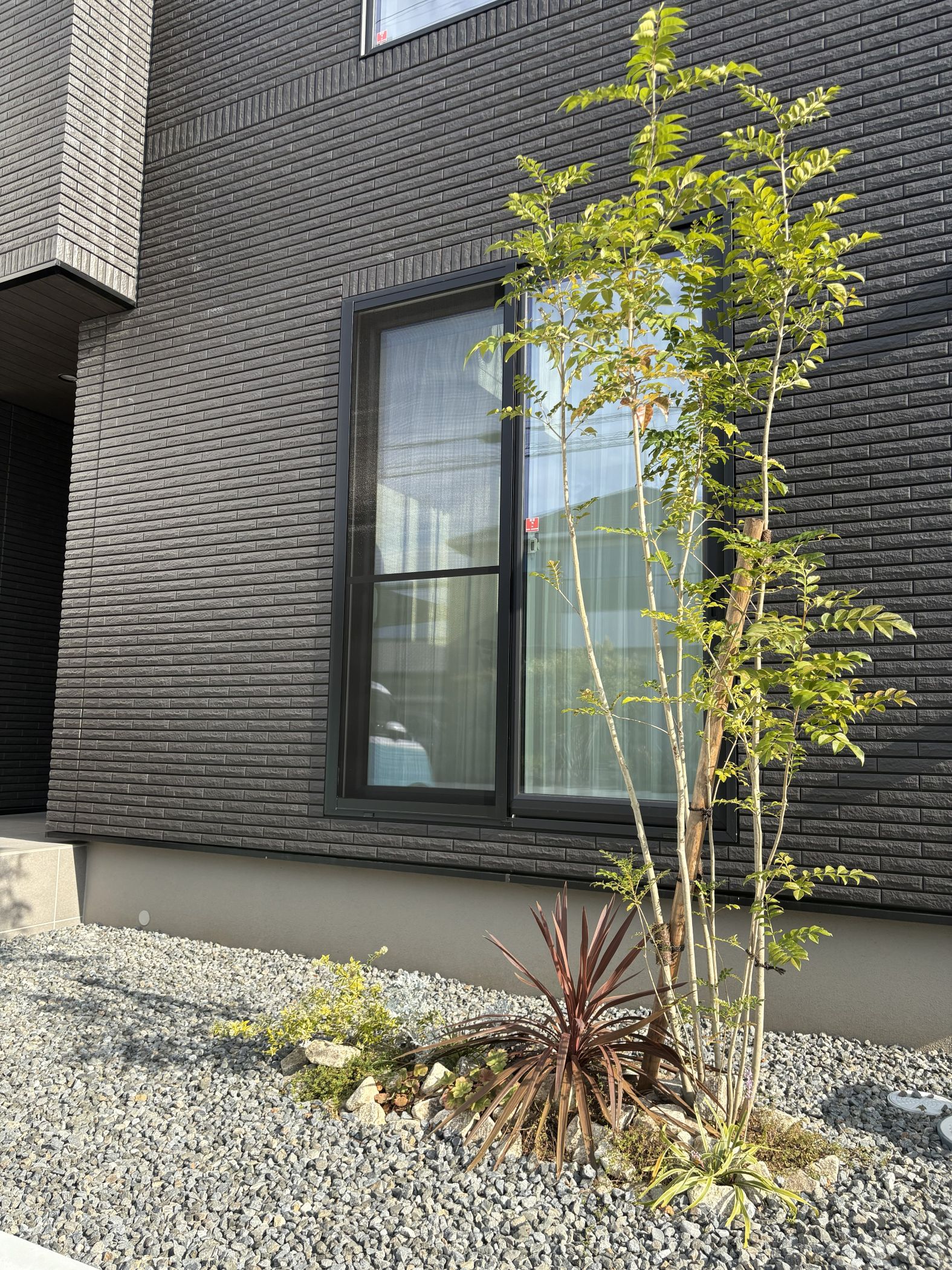 掃き出し窓前にシンボルツリーを植えることで室内に木漏れ日が入り綺麗な陰影を楽しむことが出来ます。