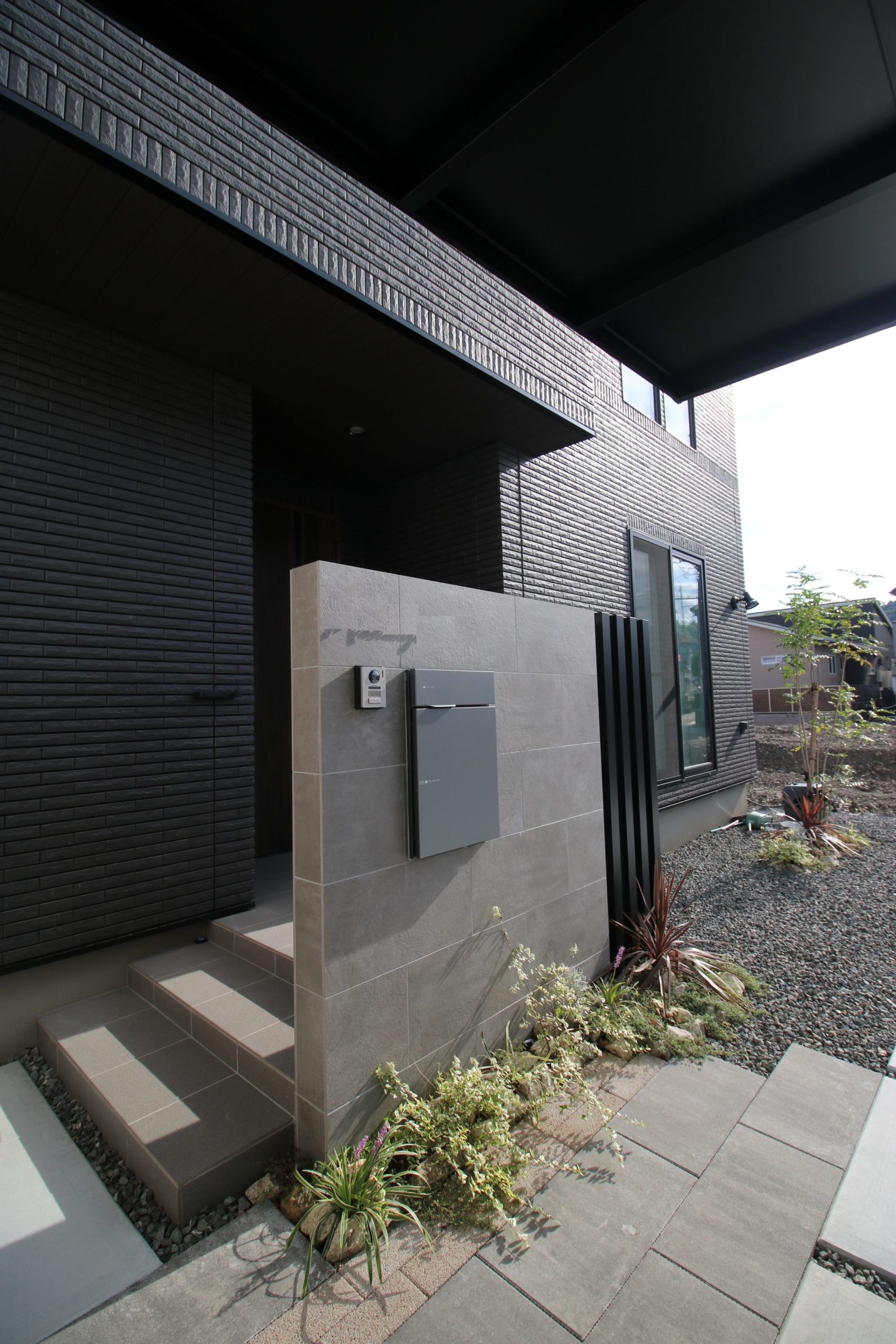 モダンでシックな建物に合わせ、タイルの門袖で重厚感をプラスしました。